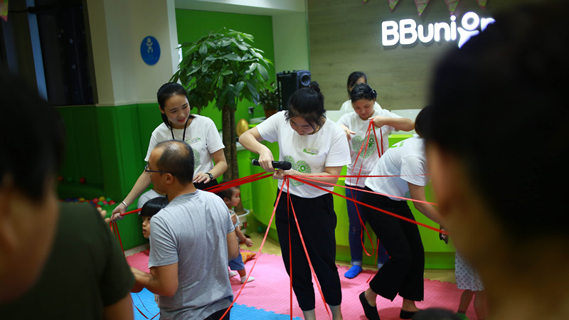 一根红线的姻缘,考验宝贝们之间的默契度。