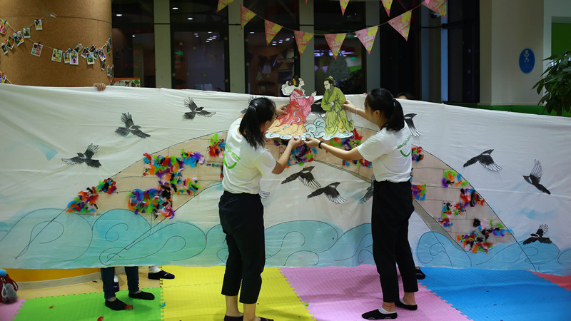 宝贝们化身七夕的喜鹊,一起为牛郎织女搭建一座鹊桥。
