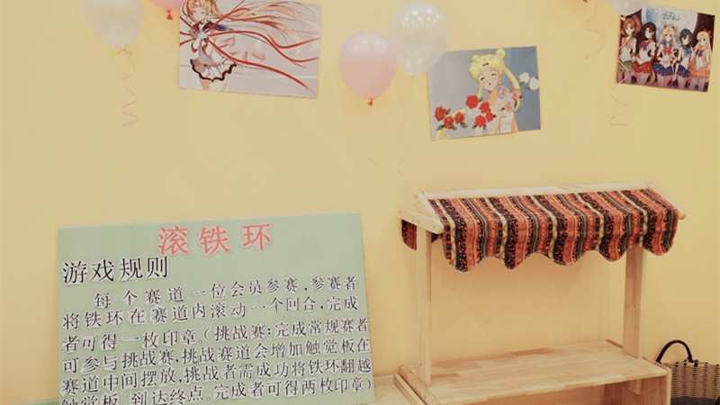哇!我们的美少女战士主题屋,一群满头冒汗的“选手”们,手里拿着铁钩,推着铁环奔跑在赛道上,哗啦哗啦的声音响成一片,场面颇为壮观。