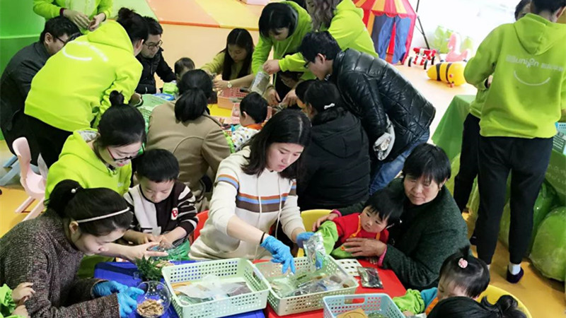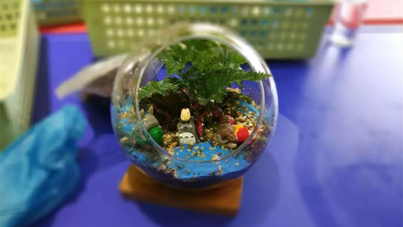 时装秀过后就是宝宝们最钟爱的DIY微景观时间了,简简单单的花花草草、泥土石头加上一个圆圆的玻璃球和一些可爱的卡通人物,组合在一起就有了自己的诗情画意,程序虽然繁琐,但是宝宝们的好奇心还是让他们安静的坐下来陪着爸爸妈妈一起完成这个美丽的艺术品,时不时的宝宝们还会蹦出一些好的创意,看似随意的摆放却是融进了宝宝们独特的审美观念,在宝宝们的世界里,“美”的概念渐渐有了实际的意义。