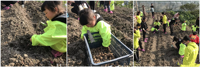 选一个属于自己的小土豆,放进刚刚挖的坑里啦,