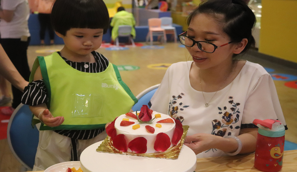 首先,爸爸们与宝宝们来为妈妈亲手做一个甜甜的蛋糕吧!
