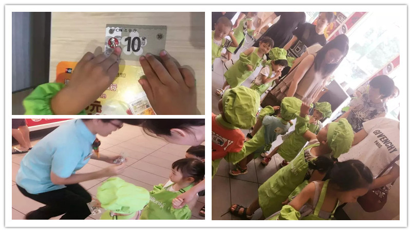 小朋友还记得《贝壳的秘密》吗?乌龟先生用劳动制盐,从虾那里获得了一袋盐,然后用贝壳进行交易。小朋友今天也要和乌龟先生一样,在KFC做小小服务员,用自己的劳动换取肯币才能换取食物呢。